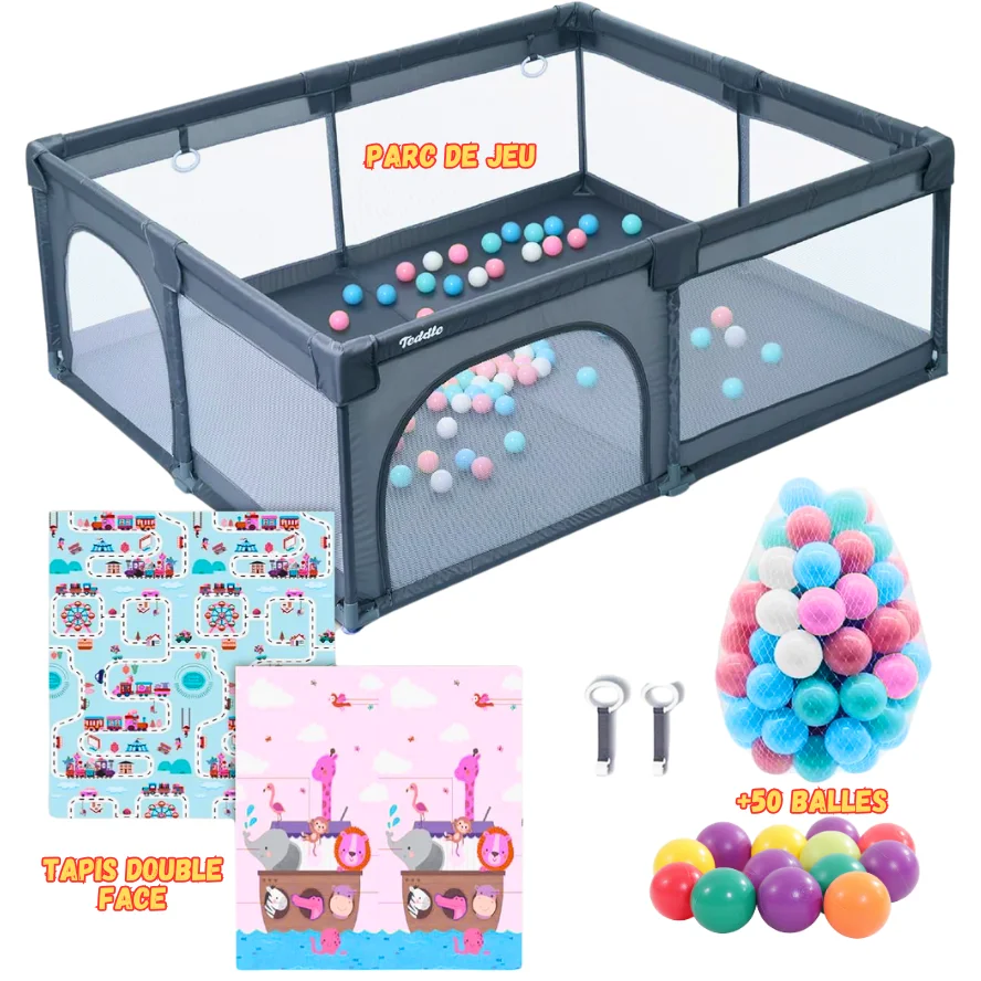 Balises : Parc bébé, 50 balles, tapis de jeu, sécurité bébé, parc de jeu