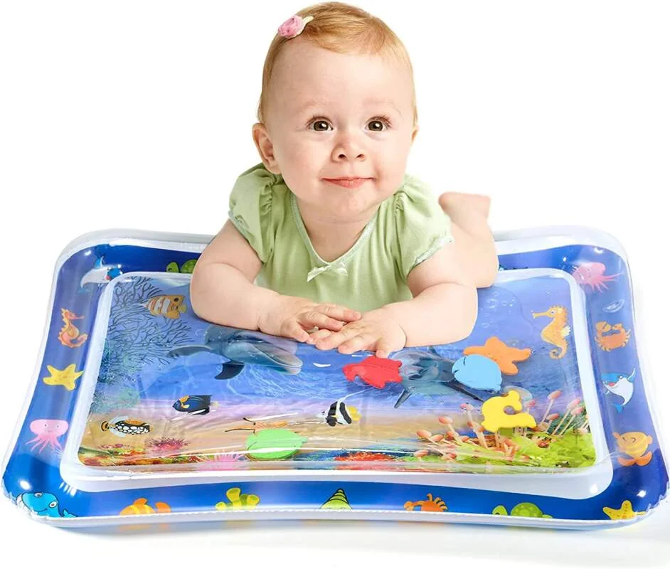 Donnez à bébé du temps pour le ventre pendant qu’il se divertit avec notre tapis gonflable pour les activités aquatiques.