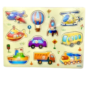 3 - 5 ans, 6 - 8 ans, Apprentissages scolaires, Jeux et Jouets en bois au Maroc, langage, Motricité fine, PuzzlesPuzzle éducatif en bois à bouton – véhicules